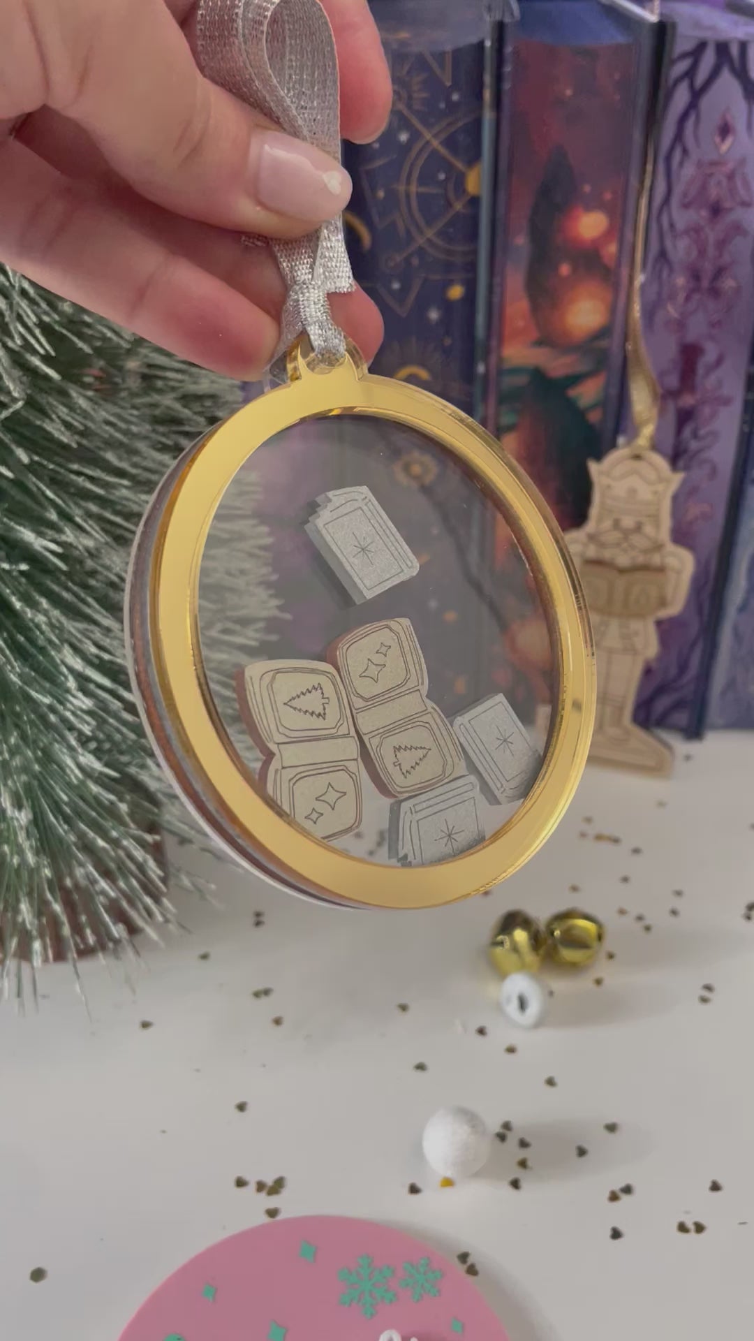 Each bauble is filled with 5 books that move freely inside the decoration.